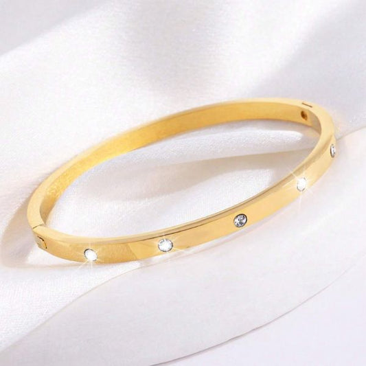 سوار من الفولاذ المقاوم للصدأ بتصميم كلاسيكي - مرصع بأحجار الراين