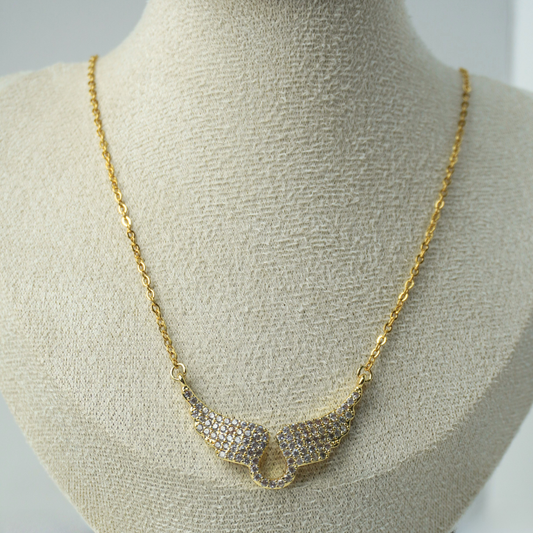 أجنحة الملاك - قلادة من الفولاذ المقاوم للصدأ والزركونيا