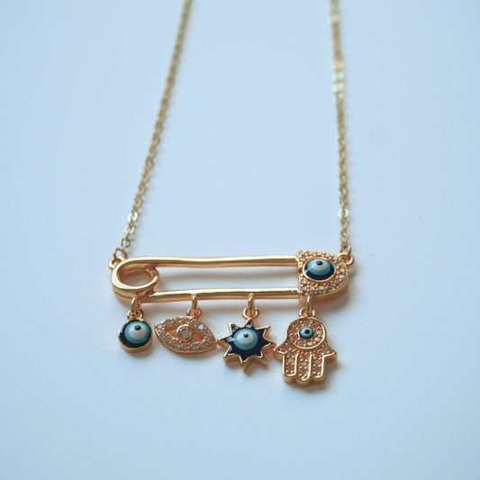 قلادة دبوس الأمان - عين الشر وأحجار الراين
