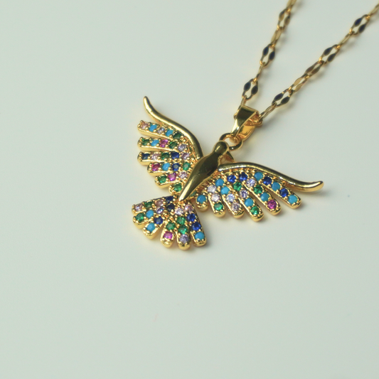 طائر - أجنحة مفتوحة - قلادة من الفولاذ المقاوم للصدأ