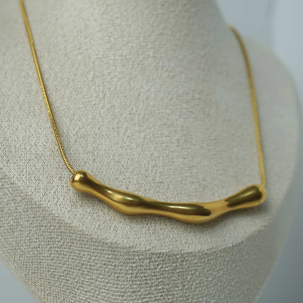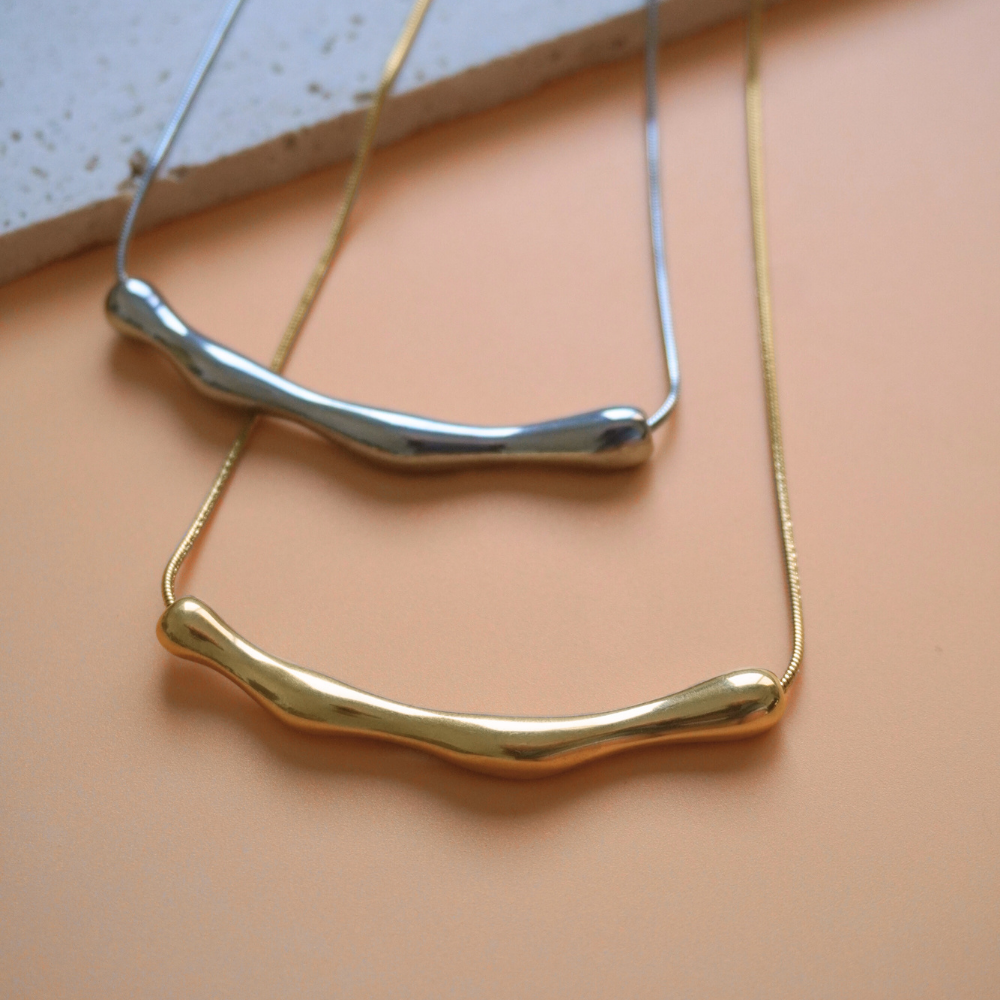 هذه القلادة الأنيقة المستقيمة مصنوعة من الفولاذ المقاوم للصدأ المتين، ومطلية بطبقة ذهبية راقية، مما يضمن جمالاً يدوم طويلاً ومقاومة للتلطيخ. تصميمها الأنيق والبسيط يوفر تنوعًا في الاستخدام، مما يجعلها إكسسوارًا مثاليًا للإطلالات الرسمية وغير الرسمية. تضمن خاماتها عالية الجودة المتانة ومقاومة التآكل، مما يجعلها مثالية للاستخدام اليومي. عززي مجموعة مجوهراتك بهذه القطعة الخالدة التي تجمع بين الحرفية الماهرة والأناقة الدائمة.
