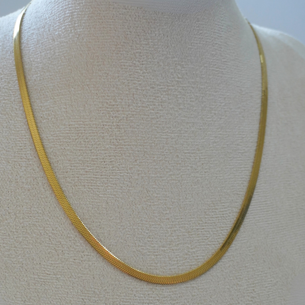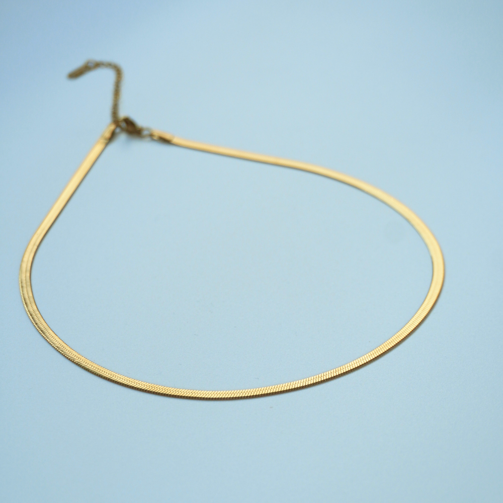 صُنعت هذه السلسلة الثعبانية من الفولاذ المقاوم للصدأ المتين والمطلي بالذهب الفاخر، وتتميز بمرونة وأناقة خالدة. تصميمها الانسيابي والمرن يضمن ارتداءً مريحًا ومظهرًا راقيًا يناسب جميع المناسبات. مثالية لعرض القلادات أو ارتداؤها بمفردها، تجمع هذه السلسلة بين الحرفية الماهرة والأناقة الدائمة.