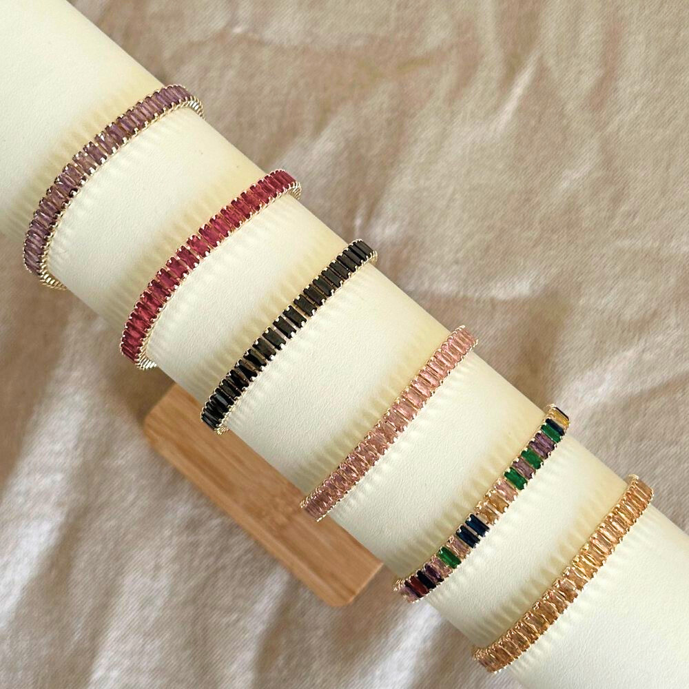 Wear this trend-setting cubic zircon and gold plated bracelet for a look that won't go out of style. Get ready to shimmer and shine with this fashionable statement piece!